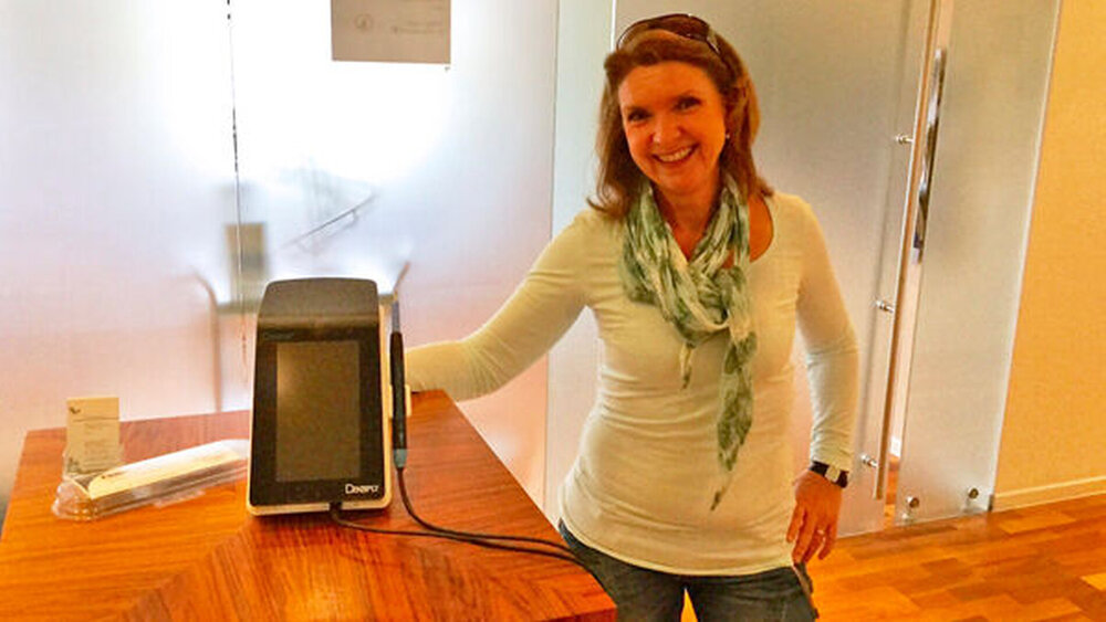 Am 10. April wurde das Cavitron Touch persönlich übergeben und aufgestellt. „Wir freuen uns sehr zu sehen, dass das Gerät in eine so schöne prophylaxeorientierte Praxis kommt und wissen es bei der sympathischen Frau Friederichs als Dentalhygienikerin in guten Händen“, so Marcus van Dijk.