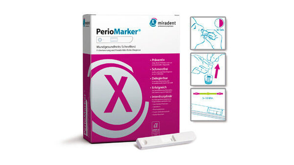 Mit dem PerioMarker von Hager&Werken können durch einen Speicheltest unmittelbar am Behandlungsstuhl erhöhte Konzentrationen der aMMP-8 Werte nachgewiesen werden. Die Matrix-Metalloproteinase-8 ist ein durch den Körper hergestelltes Enzym und dient als Indikator (Biomarker) für momentan stattfindenden degenerativen Gewebeabbau von Knochensubstanz, Weichgewebe und Kollagenfasern des Zahnhalteapparates.