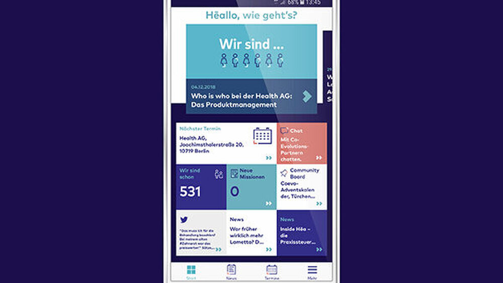Die Co-Evolution betreibt die Health AG kontinuierlich und konsequent: Alle zwei bis drei Monate kommen die Teilnehmer in Labs zusammen und erarbeiten – in Kleingruppen und nach Fachthemen aufgeteilt – neue Inhalte. Die Ergebnisse werden im Anschluss von der Produktentwicklung geprüft und fließen in den Work Stream der Softwareentwickler ein. Die Ärzte schätzen den fachlichen Diskurs und durch das Konzept sind sogar schon praxisübergreifende Freundschaften unter den Teilnehmern entstanden. Jetzt hat die Health AG eine eigene Plattform für ihre Entwickler-Community geschaffen: Coevo – die Community App.