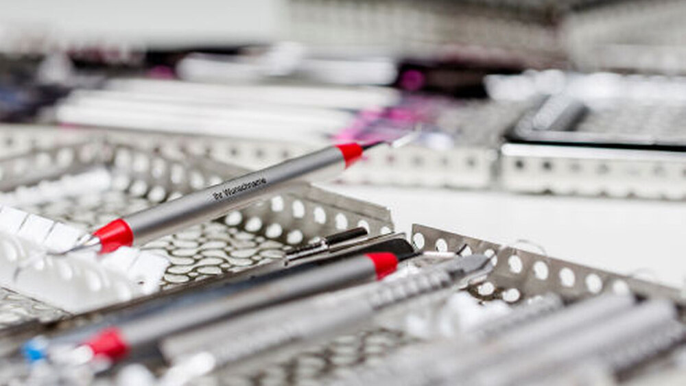 Namen der Praxis oder Logo als Gravur: Auch die Individualisierung der Instrumente gehört zu den relevanten Aufgaben im Technical Care Center. Um im Praxisalltag einzelne Behandlungs-Kits leichter auseinander halten zu können, können Teile eines Verfahrens-Kits mit einer bestimmten Gravur versehen werden. Das erleichtert dem Team die Vorbereitungen und Ausführungen. Hand: „Im Technical Care Center werden hochmoderne Service- und Dienstleistungen, Fachkenntnisse, Technologien und Handwerkskunst vereint. Unser Ziel ist es, täglich genau die Unterstützung zur Verfügung zu stellen, die auf die individuellen Bedürfnisse jedes einzelnen Kunden abgestimmt ist.“