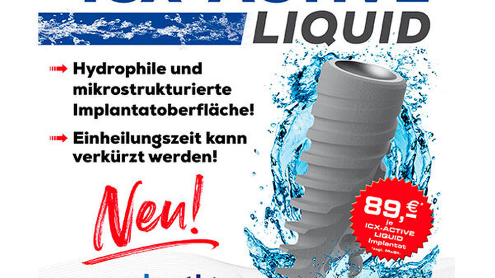 Die hydrophile und mikrostrukturierte Implantatoberfläche des neuen ICX-Implantats ICX-ACTIVE LIQUID ermöglicht neue Perspektiven.
