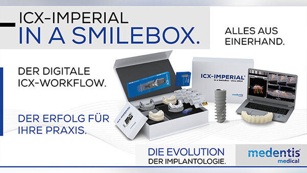 Das digitale Implantat-Behandlungskonzept ICX-IMPERIAL ermöglicht es Behandlern nun „alles aus einer Hand“ zu beziehen. „medentis liefert die DVT-Planung und die Bohrschablonen, die Implantate und die Abutments und das fertig gefräste Provisorium direkt zur OP“, fasste Geschäftsführer Alexander Scholz Mitte April 2018 auf dem ICX-Regional Symposium in Berlin zusammen und erläuterte: „Wenn Sie mit ICX-IMPERIAL arbeiten, erhalten Sie zum OP-Termin bis zu drei Bohrschablonen, ein gedrucktes 3D-Modell, alle benötigten Implantate und Aufbauten sowie die CAD/CAM-gefräste ICX-SmileBridge und das perfekte Befestigungsmaterial!“. Für behandelnde Zahnärzte stellt das innovative ICX-IMPERIAL Konzept somit eine Brücke zwischen der Implantationsplanung und der eigentlichen Behandlung ihrer Patienten dar.