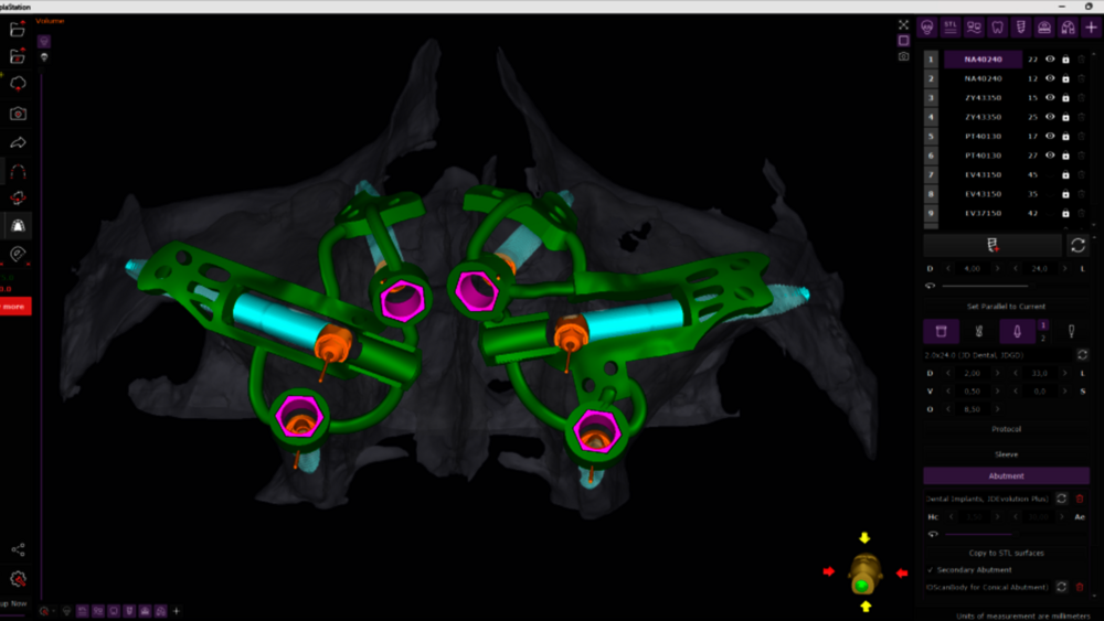 Zusätzlich zur Erstellung einfacher und zerlegbarer Bohrschablonen ermöglicht die Freemium-Software ImplaStation die einfache und schnelle Erstellung von knochengestützten Bohrschablonen. Dies wird durch die folgenden Funktionen erleichtert:
