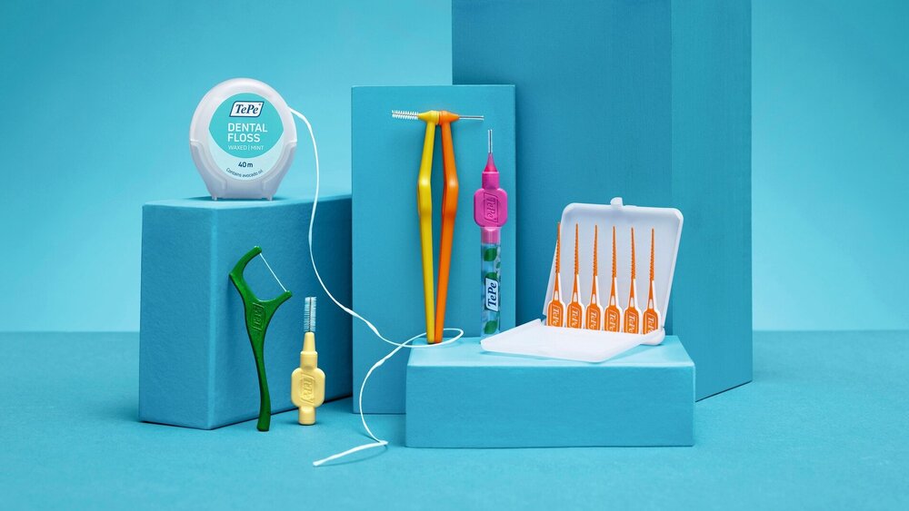 Wenn sogar die kleinste Interdentalbürstengröße nicht locker und ohne Druck in die Zahnzwischenräume passt, empfiehlt sich die Nutzung von Zahnseide. Bei TePe ist diese in unterschiedlichen Ausführungen erhältlich. Zum Beispiel als TePe Dental Floss, eine Zahnseide aus recycelten Wasserflaschen, die sich bei Verwendung ausdehnt und Biofilm besonders gründlich aufnimmt. Außerdem bietet TePe das Bridge & Implant Floss an, eine dicke, flexible Zahnseide, die speziell für die Reinigung um Implantate, Brücken und Zahnspangen entwickelt wurde. Eine besonders komfortable Anwendung bietet der TePe GOOD MiniFlosserals vorgespannter Zahnseidehalter – auch unterstützend bei Kindern oder Senioren.