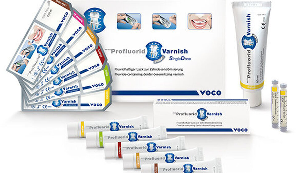 VOCO Profluorid Varnish eignet sich ideal zur Behandlung von hypersensiblen Zähnen sowie zur Versiegelung der Dentintubuli bei Kavitätenpräparationen oder empfindlichen Wurzeloberflächen. Auch nach der professionellen Zahnreinigung ist eine Behandlung mit VPV sinnvoll, um die zuvor abgetragenen Calciumfluoriddepots wieder aufzufüllen. Der Fluoridgehalt liegt bei 22.600 ppm Fluorid (≙ 5 % Natriumfluorid). Zudem überzeugt der weiß-transparente Lack mit einer hohen Feuchtigkeitstoleranz sowie mit einer sehr guten Haftung an der Zahnhartsubstanz.
