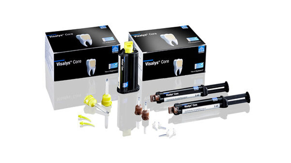 Visalys Core ist röntgenopak und zur Herstellung von Stumpfaufbauten wie auch für die Befestigung von Wurzelstiften geeignet. Visalys Core ist dualhärtend, sorgt also für feste und zuverlässige Aufbauten auch an Stellen ohne Lichtzugang, und lässt sich leicht und direkt in die Kavität austragen, fließt gut an und ist trotzdem standfest und sehr gut modellierbar. Sie erhalten das Bisphenol A-freie Visalys Core in den Farben Dentin und Weiß in der 5-ml-Doppelspritze und der 25-ml-Kartusche.