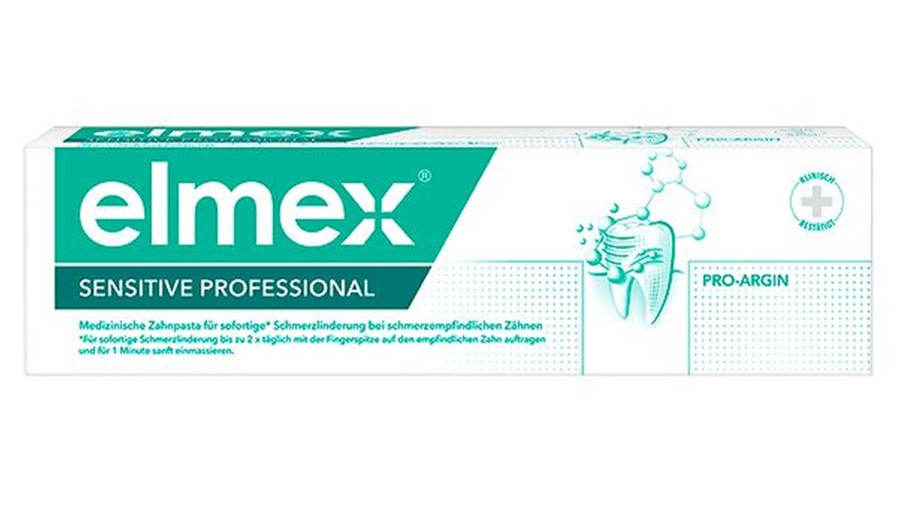 .” Die PRO-ARGIN-Technologie kommt in den Zahnpasten der elmex SENSITIVE PROFESSIONAL Serie zum Einsatz.