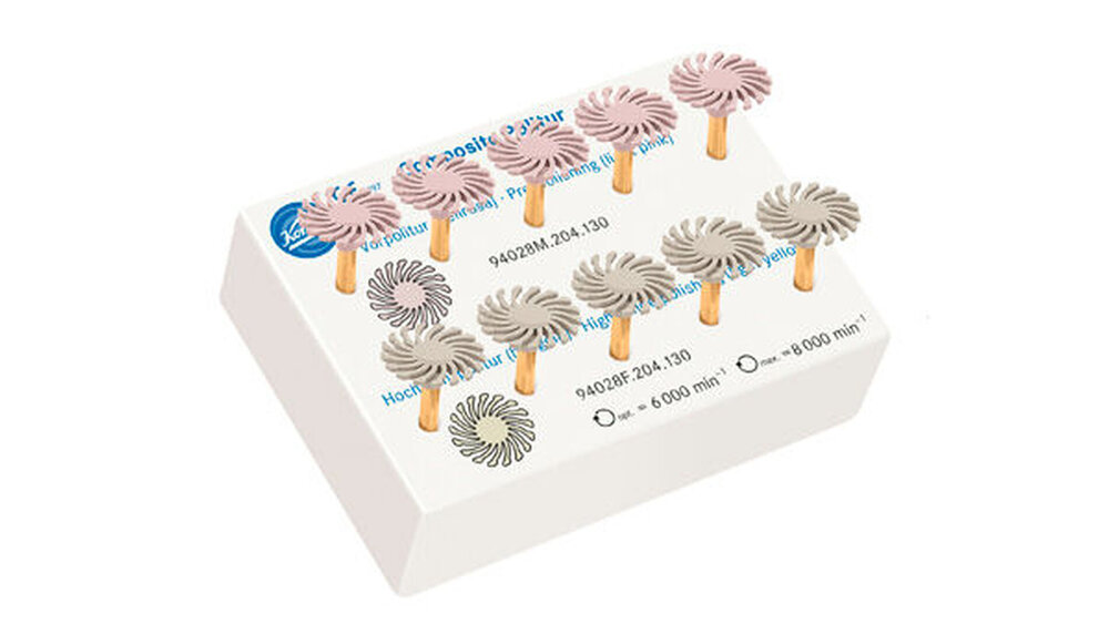 Politur heißt nichts anderes, als dass eine Verdichtung der Oberfläche erzeugt wird. Man könnte es auch als eine Versiegelung begreifen. Und je glatter das Endergebnis, desto geringer das Risiko einer Plaqueakkumulation. Das ist der klinische Effekt. Aber jeder Behandler sollte sich auch einmal kurz in die Sicht des Patienten hinein versetzen: Für diesen wird die Qualität der Behandlung sofort einschätzbar, wenn er sich mit der Zunge über die Restauration fährt bzw. wenn ihm der Glanz der Restauration im Spiegel entgegen strahlt. Genau aus diesen Gründen sollte jede Praxis einen individuellen Politurweg für sich und das jeweilige Behandlungskonzept herausfinden: 1-, 2- oder 3-stufig, mit unterschiedlichen Poliererformen oder eben hochgradig rational und praktisch per Polierspirale in 2 STufen. Eines ist sicher: Die 94028M und 94028F lockern die Politur etwas auf, bieten Zahnarzt und Team Praktikabilität, Wirtschaftlichkeit und zufriedene Patienten.