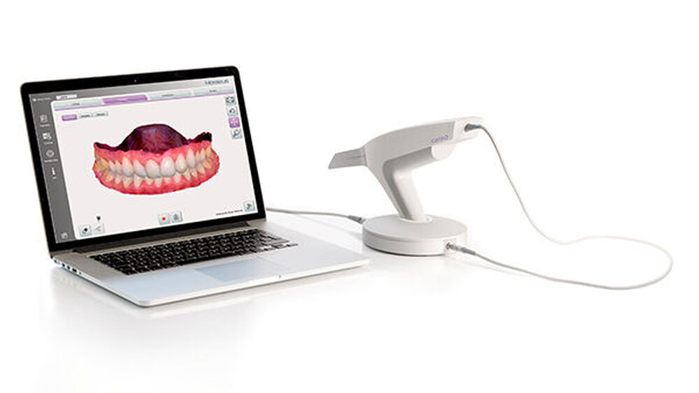 Die neue Generation von cara TRIOS vereinigt drei Komponenten: einen Intraoralscanner mit schmalem Mundstück für die schnelle und mühelose 3D-Farbabformung, eine integrierte intraorale Kamera und ein Farbmessgerät beim Scannen für präzise und berechenbare Resultate. Durch das schmale Mundstück des Intraoralscanners treten Würgereiz oder Erstickungsängste nicht mehr auf. Der Scan kann sogar unterbrochen und später problemlos fortgesetzt werden. Zudem entfallen Vorbereitungen des Patienten wie Auftragen von Puder oder Spray.