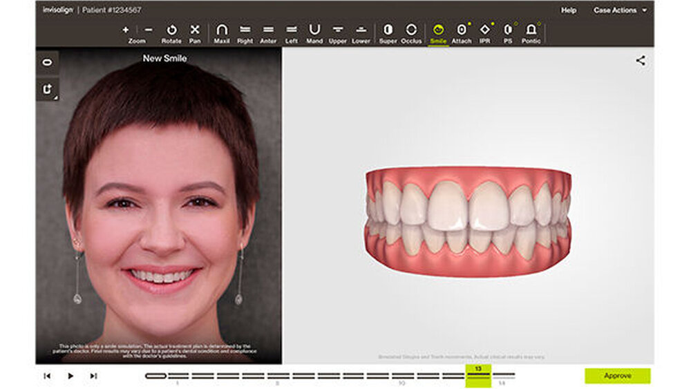 Aligns unternehmenseigene ClinCheck Software für die individuelle Behandlungsplanung bietet Anwendern 3D-Bilder der geplanten Zahnbewegungen während der gesamten Behandlungsdauer. Mit dem Visualisierungstool können Ärzte eine überzeugende klinische Visualisierung der Zahnstellung im Bild des Patientengesichts erstellen. Ärzte können die Darstellung dann als Leitfaden in Patientensprechstunden nutzen, um diese aufzuklären, die Vorteile der Zahnkorrektur aufzuzeigen und die Invisalign Clear Aligner Behandlungsoption für den einzelnen Patienten zu visualisieren und zu diskutieren.