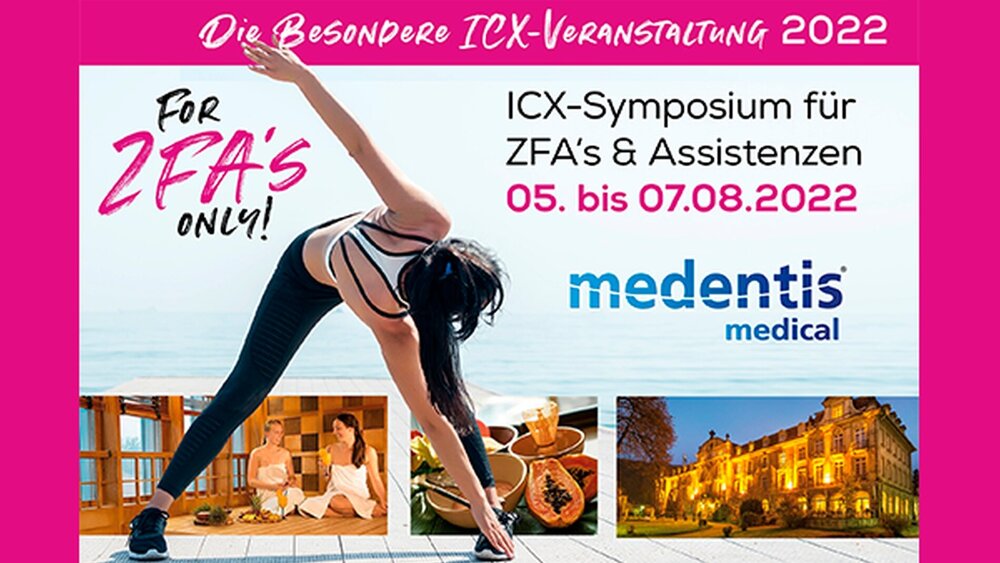 Nach dem Erfolg der ersten „For ZFA´s only“-Veranstaltung im August 2019 freut sich medentis sehr, Sie im Jahr 2022 zu ihrer nächsten, ganz besonderen ICX-Fortbildung „For ZFA‘s only“ einladen zu dürfen.