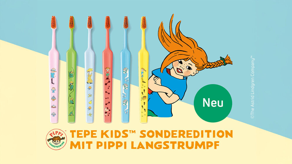 Ab sofort erhältlich: Die TePe Kids Pippi Langstrumpf Kinderzahnbürstenkollektion