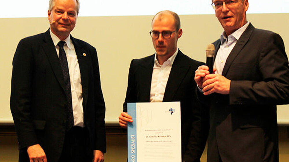 Im Rahmen der DG PARO-Frühjahrstagung 2018 in Berlin wurde Herrn Dr. Antonio Renatus, MSc. aus Leipzig, die Ernennungsurkunde zum DG PARO-Spezialisten für Parodontologie überreicht, er ist nach Dres. Kern, Swaneburg, Petsos und Victorov bereits der fünfte DG PARO/DIU-Masterabsolvent, der diese Hürde gemeistert hat, einige weitere befinden sich gerade noch in der Vorbereitung.