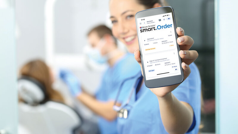 Die intuitive Benutzeroberfläche, eine mobile App und die direkte Anbindung an den Henry Schein-Onlineshop, ermöglichen eine einfache und transparente Verwaltung – jederzeit und von jedem Gerät aus. Besonders praktisch: Produkte, die mit herstellereigenen Barcodes versehen sind, können direkt und ohne aufwändiges Bekleben mit selbst gedruckten Etiketten verarbeitet werden. Die Einbuchung der kompletten Lieferung erfolgt schnell und unkompliziert – mit dem Smartphone, Tablet oder einem vorhandenen Scanner. Zudem lässt sich individuell festlegen, bei welchem Mindestbestand automatisch nachbestellt werden soll. Ein weiterer Vorteil: smart.Order erkennt Materialien, die sich dem Ablaufdatum nähern und unterstützt so dabei, Verluste durch verfallene Produkte zu vermeiden.