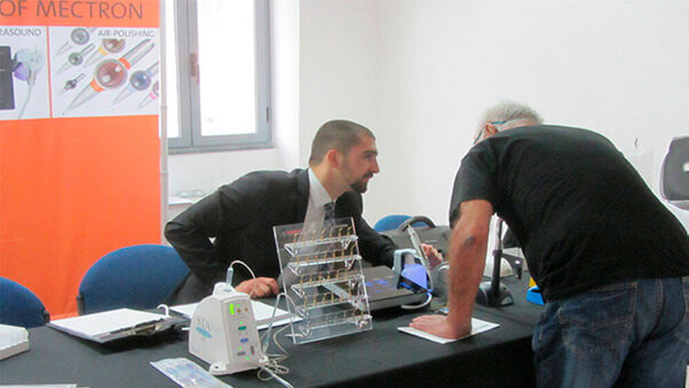 Am Freitagvormittag referierte Prof. Dr. Tomaso Vercellotti, Genua, auf Englisch über "Piezoelectric Implantology", also über den Einsatz der Piezosurgery in der Implantologie. Anschließend berichtete Dr. Peter Randelzhofer, München, über die Verwendung von PRF im Hart- und Weichgewebemanagement. Titel des Vortrags: "Der biologische Wundheilungsbeschleuniger". Im Hands-on-Teil wurde die Herstellung von PRF mit dem Choukroun Zentrifugen-System, das Handling von PRF sowie die Herstellung eines Augmentats aus PRF und Bio-Oss geübt.Am Samstag sprach erneut Randelzhofer: Es ging um das prothetische und chirurgische Konzept für den ästhetisch anspruchsvollen Bereich. Themen waren ein Praxiskonzept für erfolgreiche Behandlungstechniken für vorhersagbare Ergebnisse und die Implantologie. Bestandteile des Hands-on-Kurses waren Schnittführungen, Lappentechniken, Nahttechniken, Instrumentarien und Nahtmaterialien.