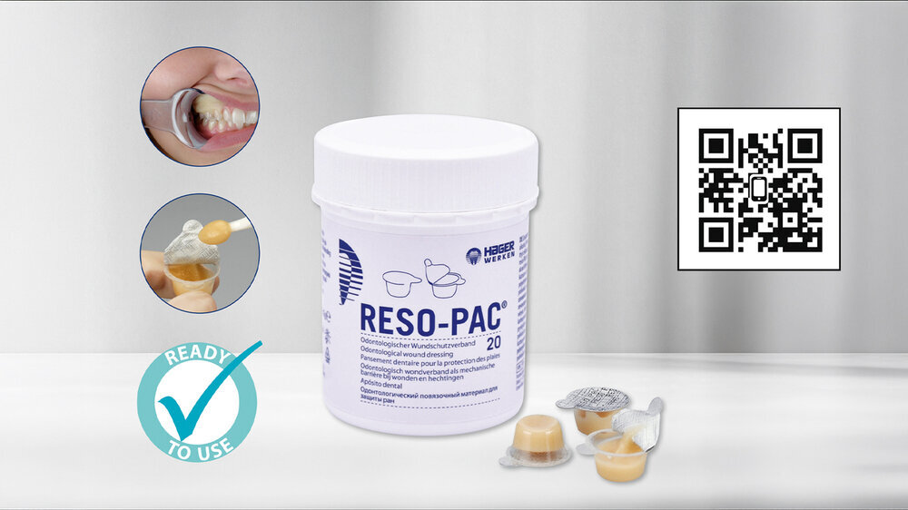 Dank dieser Eigenschaften ist Reso-Pacäußerst vielseitig einsetzbar, etwa in der Implantologie, Parodontologie, nach Extraktionen, in der Kieferorthopädie oder Prothetik, und bietet Patienten einen spürbaren Komfort, zum Beispiel beim Schutz wunder Gingivabereiche bei Bracketträgern. Die hygienischen Einzelportionen sind jetzt in einer neuen Packungsgröße von 20 × 2 g erhältlich (zuvor 50 × 2 g), zusätzlich steht Reso-Pac weiterhin in der ökonomischen 25 g Tube zur Verfügung.
