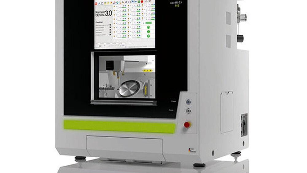 cara Mill 3.5 PRO und cara Mill 3.5L PRO verarbeiten mit einer Spindelleistung von 60 000 Umdrehungen pro Minute zuverlässig sämtliche in der Zahntechnik verwendete CAD/CAM-Materialien – ebenso wie ihre Vorgänger. Zudem ermöglichen sie dank fünf simultan betriebenen Achsen mit einem Anstellungswinkel von bis zu 30 Grad auch anspruchsvolle Arbeiten mit komplexen Geometrien. Die neuen PRO-Varianten besitzen 200 Watt starke, hochauflösende Servomotoren, die mit Absolut-Encoder bei einer Auflösung von 0,15 µm eine um bis zu 20 Prozent schnellere Bearbeitung ermöglichen. 30 000 Inkrementschritte sorgen darüber hinaus für präzise Ergebnisse. Vibrationsfreies Fräsen wird durch das einteilige Maschinengerüst aus Polymerbeton erreicht, das höchstmöglicheStabilität gewährt. Wer seine Fräsmaschine wirtschaftlich über Nacht oder am Wochenende fertigen lassen möchte, kann dies über die Loader-Erweiterung vollautomatisch gestalten: Die cara Mill 3.5L sowie ihre PRO-Variante verfügen über einen 12-fach Werkzeugwechsler. Sechs beziehungsweise acht Blankhalter sind bereits vorinstalliert. Beide Maschinen sind auf zwölf erweiterbar und besitzen ein industrielles Nullpunktspannsystem. Großes Augenmerk wurde bei der Entwicklung auch auf die Benutzerfreundlichkeit und die einfache Integration in die bestehende Laborlandschaft gelegt. So sind die neu-en PRO-Varianten mit 15 Zoll-Displays ausgestattet und bieten ebenso wie ihre Vorgänger Schnittstellen für WiFi, Ethernet und USB 2.0.