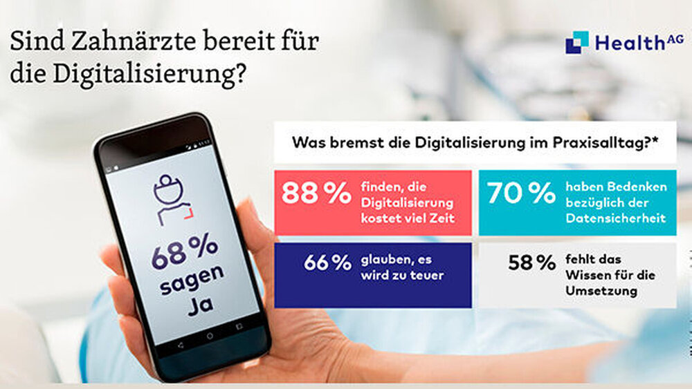 Als mögliche Barriere sehen 88 Prozent der Zahnärzte vor allem die Annahme, dass die Implementierung digitaler Lösungen viel Zeit kostet. Wie ein Bremsklotz wirken sich nach Ansicht von 70 Prozent der Befragten auf die Digitalisierung auch Bedenken bezüglich der Datensicherheit aus. „Zahnärzte brauchen ein Angebot, dem sie vertrauen können, also eine Digitalisierungslösung, die zuverlässig und sicher auf Grundlage deutscher oder europäischer Datenschutzgesetze umgesetzt wird“, sagt Jan Schellenberger von der Health AG. „Dann können wir Zahnärzten auch glaubhaft vermitteln, dass ihre Daten und die ihrer Patienten in einem professionell betriebenen Rechenzentrum sicherer aufgehoben sind als etwa auf einer Festplatte in den Praxisräumen.“