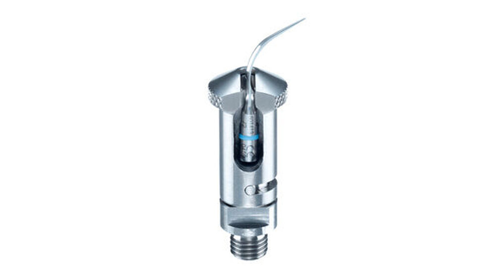 Damit lassen sich alle gängigen Spitzen für Air Scaler und Piezo Scaler leicht an eine Injektordüse im Oberkorb anschließen. Der Adapter besteht aus einem entsprechenden Verschlussteil und einem dazu passenden Element, das im Inneren eine kleine Spülkammer beherbergt. Dort wird das Instrument eingesetzt – und, sobald die Spülkammer geflutet ist, von innen und außen gründlich gereinigt. Auch getrocknete und fest haftende Rückstände lassen sich so gut entfernen.