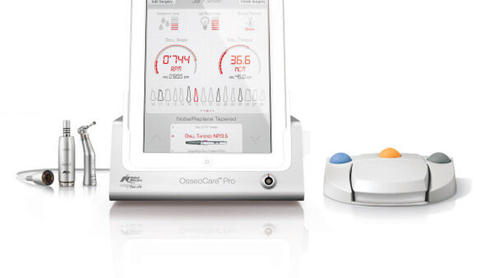 Das System verfügt über vorprogrammierte Bohrprotokolle für alle Nobel Biocare Implantate, lässt sich dank der intuitiven Benutzeroberfläche einfach bedienen und ist mit dem zurzeit leistungsstärksten Mikromotor ausgestattet. Die entsprechende OsseoCare Pro-App lässt sich über den AppleApp Store kostenfrei auf das iPad laden und wird zukünftig regelmäßig um neue Funktionen ergänzt.