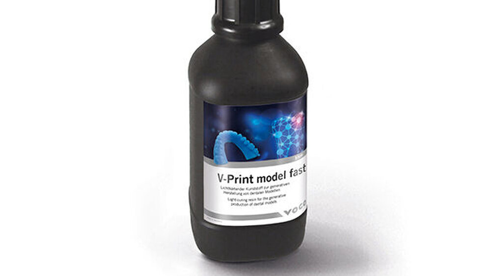 V-Print model fast von VOCO ist ein spezielles Druckharz, dessen Materialzusammensetzung für den 3D-Druck optimiert ist, dies jedoch ohne das beim Faktor Qualität Einschränkungen hingenommen werden müssen.