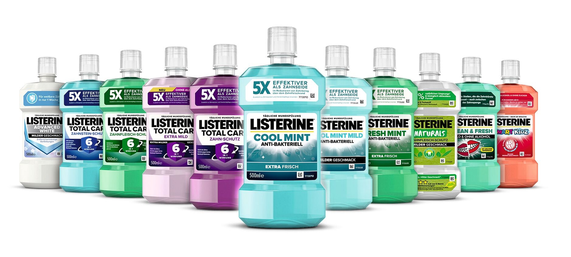 Mundspülungen sind dauerhaft eine sinnvolle Ergänzung zur Zahnbürste und Interdentalreinigung. Für den langfristigen Einsatz* im Rahmen der häuslichen 3-fach-Prophylaxe eignen sich besonders Mundspülungen von LISTERINE, da sie ätherische Öle enthalten.