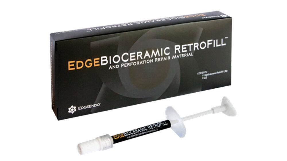 EdgeBioCeramic RetroFill and Perforation Repair Material: Dieses biokeramische Produkt (formbares Putty) wird für alle Verfahren empfohlen, bei denen das Material abdichten soll und eine hohe Auswaschbeständigkeit erforderlich ist, wie zum Beispiel retrograde Obturation, Pulpaüberkappungen, Reparatur von resorptiven Defekten(intern und extern), Apexifikation und Apexogenese