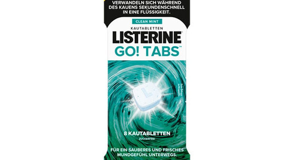 Im Laufe des Tages vermehren sich schlechter Geschmack und Bakterien im Mund, die Mundgeruch und ein unangenehmes Mundgefühl verursachen können. Mit den neuen LISTERINE GO! Tabs stehen nun überall und jederzeit anwendbare Kautabletten zur Verfügung, die rasch für ein sauberes und frisches Mundgefühl sorgen. Sie ergänzen optimal die zweimal täglich empfohlene Dreifach-Prophylaxe aus Bürsten, Interdentalpflege und antibakterieller Mundspülung.