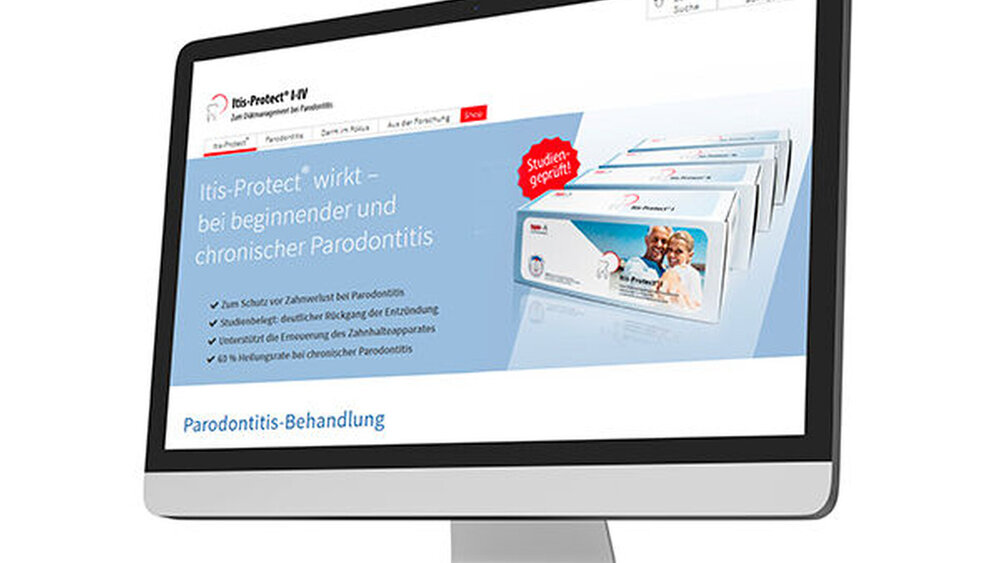 verdeutlicht das Konzept der hypoallergenen orthomolekularen Medizin und bietet Patienten zusätzlich viele allgemeine Informationen rund um das Krankheitsbild der Parodontitis. Unter verschiedenen Reitern werden Informationen zur Genese und herkömmlichen Behandlung von Parodontitis, zur Funktion und Rolle des Darms bei der Entstehung entzündlicher Erkrankungen sowie zu Itis-Protect nachvollziehbar dargestellt. Bei Itis-Protect handelt es sich um eine bilanzierte Diät zum Diätmanagement von Parodontitis. Die viermonatige Kur mit einer hochwertigen Kombination aus Omega-3-Fettsäuren, Vitaminen, Spurenelementen und Mineralien sowie speziellen Darmbakterien reduziert die Entzündungsaktivität im Mundraum nachweislich.