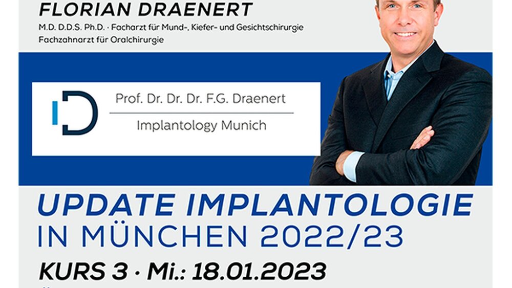 Exklusive Seminar-Reihe mit Pof. Dr. Florian Draenert. Kurs 3: Ökonomische Implantatkonzepte – nicht jeder Patient hat ausreichende Mittel – Mittwoch, 18. Januar 2023, München.