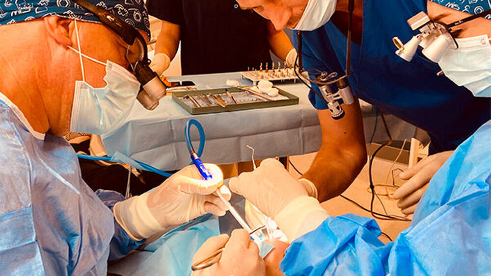 Gemeinsam mit Dr. Rasmus Sperber – durch und durch Experte für dentale Implantologie – hat MIS die „MIS 100 Implant Challenge“ entwickelt. Die Vision dahinter: Jeder Kursteilnehmer sollte versuchen im ersten Jahr der Challenge circa 100 Implantate in der eigenen Praxis zu setzen. Sascha Würzinger, Geschäftsführer MIS Deutschland, und Olaf Pozsgay, Marketingmanager MIS Deutschland – beide maßgeblich an der Gründung und Entwicklung der Challenge beteiligt: „Um dieses einzigartige Konzept zu ermöglichen, stellen wir von MIS den Teilnehmern als Unterstützung ein ausgewähltes Team aus Chirurgen, Prothetikern, Coaches und Mentoren an die Seite, so dass – egal ob Assistenzzahnarzt, erfahrener Implantologe oder MKG’ler – jeder sein nächstes Level in der Implantologie erreicht. Sechs perfekt aufeinander abgestimmte Module – vom Kick Off bis zum OP-Kurs – sichern den Erfolg.“ Dr. Michael Berthold als erfahrener Implantologe bringt es auf den Punkt: „Der entscheidende Faktor an diesem Fortbildungskonzept ist, dass die Kursteilnehmer selber operieren. Weil: Operieren lernst du mit den Händen! Du musst es machen und dann kannst du es irgendwann. Natürlich vermitteln auch wir theoretisches Wissen als Basisgrundlage, aber explizit die praktische Anwendung ist hier der entscheidende Unterschied zu den meisten anderen Angeboten aus diesem Bereich.“ Die Teilnehmerin Nina Mayerhofer, Zahnärztin aus Berlin, pflichtet ihrem Kollegen bei: „Als ich zum ersten Mal von dem Konzept der MIS 100 Implant Challenge gehört habe, war ich sofort überzeugt, weil ich auch eher eine ‚Macherin‘ bin. Es ist ja schön, Methoden in der Theorie zu hören, aber es geht ja einfach darum, in die Aktion zu gehen!“