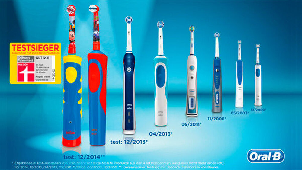 Das von Stiftung Warentest ausgezeichnete Oral-B Modell Kids Power Mickey Mouse für Kinder ab 3 Jahren punktete in der Kategorie Zahnreinigung mit der Note „Gut“. Außerdem bescheinigte Stiftung Warentest eine sehr gute Haltbarkeit sowie gute Handhabung. Auch das Modell Oral-B Stages Power, gedacht für Kinder ab 5 Jahren, schnitt in der Stiftung Warentest Bewertung insgesamt mit „Gut“ ab.