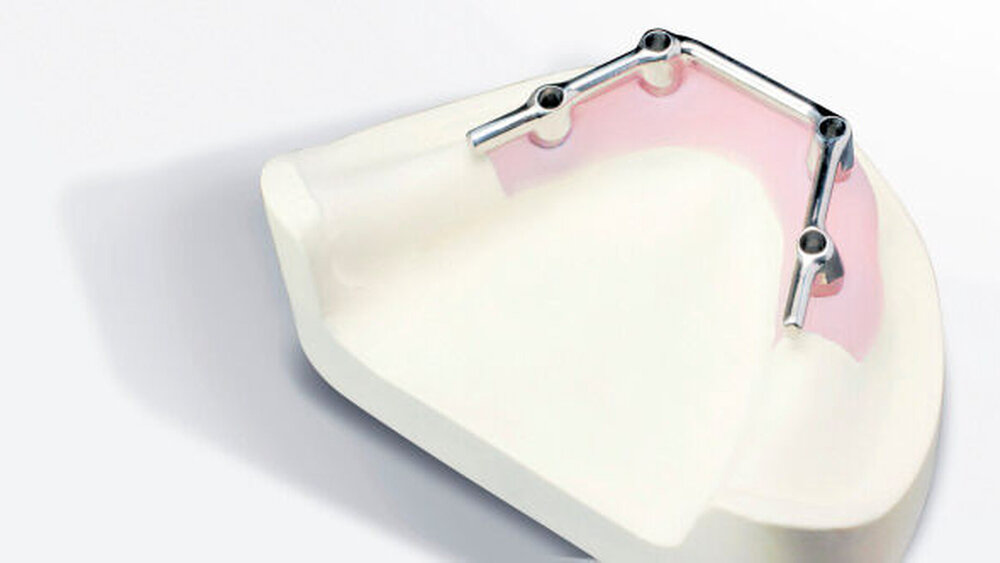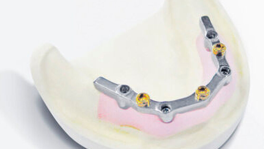 Zahnlose Ober- und Unterkiefer werden heute in der Regel mit Vollprothesen versorgt. Im Laufe der Zeit können beim Tragen jedoch Probleme auftreten: Die „Dritten“ sitzen nicht fest genug, das Kauen ist eingeschränkt, die Lebensqualität sinkt deutlich. Eine gute und inzwischen bewährte Alternative mit vorhersagbaren Ergebnissen ist die Befestigung einer Vollprothese auf Implantaten mit Hilfe einer Stegkonstruktion1. Dabei handelt es sich um individuell oder vorgefertigte Metallverbindungen zwischen zwei oder mehreren Implantaten, die auch der Verblockung der Implantate dienen.