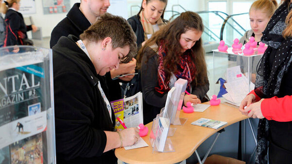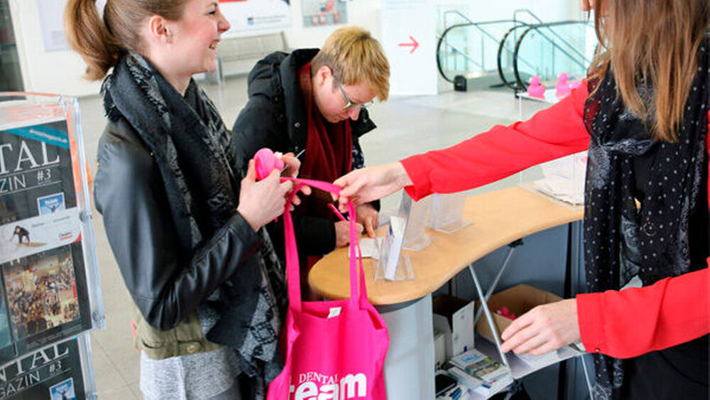 Erfolgreich war auch der Auftritt des Deutschen Ärzteverlags in Hamburg. Im Eingangsbereich der Messe überreichten Hostessen die neuen pinken Tüten von DENTALteam, die nicht nur den passenden Slogan „Bitte lächeln“ trugen sondern auch passenden zur aktuellen Diskussion zu Plastiktüten ökologisch wertvolle Stofftüten sind. Die Messebesucher beteiligten sich auch zahlreich am DENTALteamMesse-Gewinnspiel, bei dem es einen iPad mini zu gewinnen gibt.