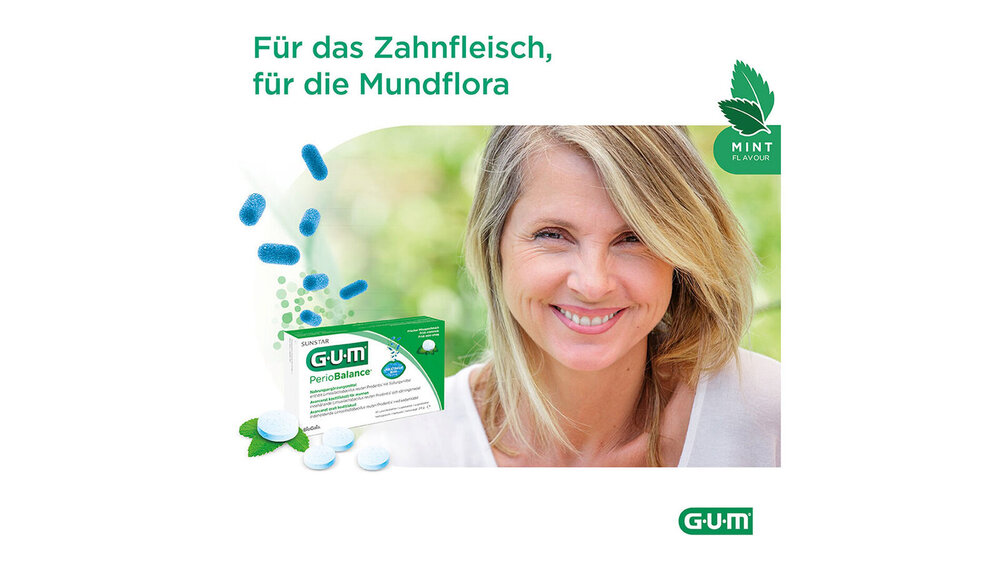 Das orale Nahrungsergänzungsmittel GUM PerioBalanceLutschtabletten ist das erste seiner Art, um mit der probiotischen Wirkweise des Bakteriums LrP die orale Gesundheit effektiv zu unterstützen. Dabei setzt das Bakterium an der pathophysiologischen Grundlage bei der Entstehung von Parodontalerkrankungen an: einem Missverhältnis pathogener und nützlicher Bakterien im Mundraum. Zusammen mit weiteren Wirkansätzen, wie einer direkten Hemmung pathogener Bakterien und einer immunstimulierenden Wirkung, hilft LrP bei der Gesunderhaltung von Zahnfleisch und Zähnen [1-4].