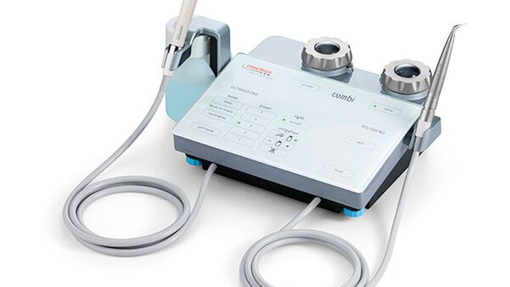 Bei einer herkömmlichen Prophylaxe-Behandlung kommen normalerweise eine Reihe von unterschiedlichen Geräten zum Einsatz: Küretten, Scaler, Winkelstücke, Polierer, Pasten – wäre es nicht perfekt, wenn sie alle in einem Gerät vereint wären? Mit dem combi
