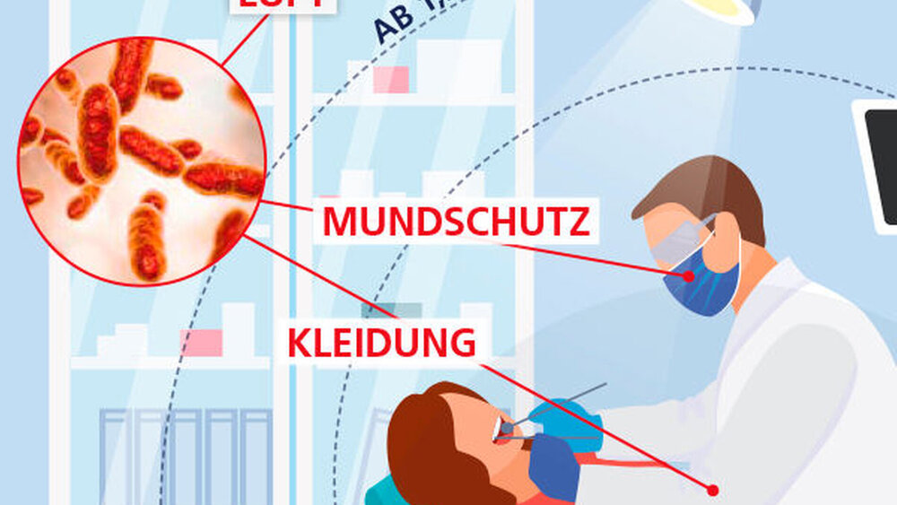 Bei zahnärztlichen Behandlungen kann es zu einer Belastung der Raumluft mit potenziell infektiösen Keimen kommen. Dieses Risiko lässt sich durch eine effektive Keimzahlreduktion im Patientenmund verringern.