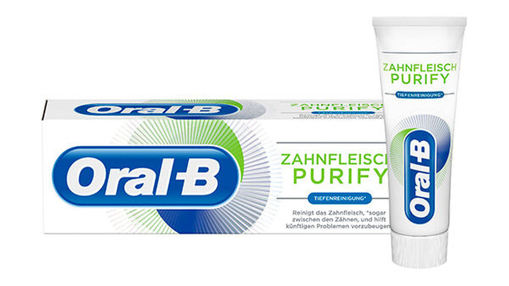 Das Zahnpflegeportfolio von Oral-B hilft, Zahnfleischbluten zu reduzieren und den Zahnschmelz zu reparieren. Die neue Aktivschaum-Formel der Oral-B Zahnfleisch Purify Zahncreme sorgt für gründliche Reinigung.