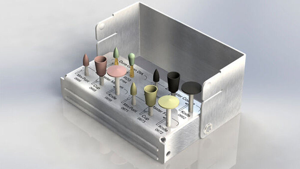 Die Instrumente sind wahlweise für das Winkelstück oder Technikhandstück in einem hochwertigen sterilisierbaren Bohrerständer aus Edelstahl erhältlich. Selbstverständlich werden auch alle Instrumente einzeln und in diversen Sortimenten angeboten.