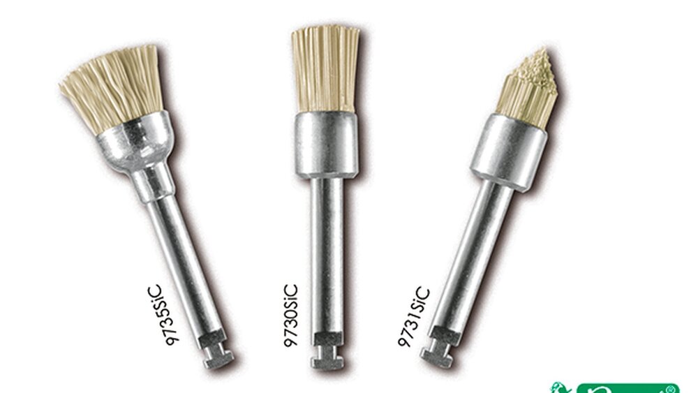 Die wiederaufbereitbaren SIC Brush mit Siliziumcarbid durchsetzten Spezial-borsten ermöglichen eine formerhaltende Hochglanzpolitur okklusaler, konkaver und konvexer Flächen, ganz ohne zusätzliche Politurpaste.