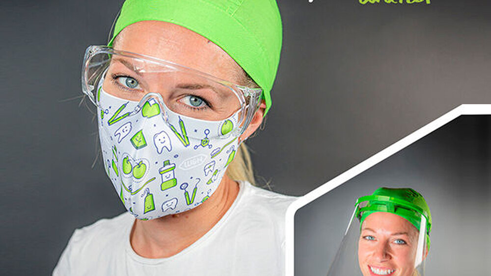 Im frischen Grün kommt die W&H-OP-Haube daher und auch das Schutzvisier besitzt grüne Akzente. Den Mund-Nasen-Schutz zieren darüber hinaus witzige dentale Comic-Motive, die sicher nicht nur Ihrem Team, sondern auch Ihre Patienten gefallen. Bestellen Sie Mund-Nasen-Schutzmasken, Schutzschild, Schutzbrille und OP-Haube ab sofort exklusiv im Onlineshop von W&H unter