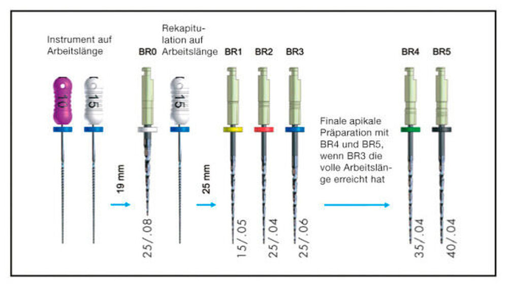 Die Beständigkeit einer endodontologischen Behandlung bedingt ein hohes technisches Fachkönnen, um das biologische Ziel zu erreichen. Es ist unumstritten, dass das apikale Drittel des Wurzelkanals bis zu einer bestimmten minimalen Größe aufbereitet werden muss, um einen vorhersehbaren Erfolg zu sichern. Die meisten Aufbereitungssysteme benötigen einen zusätzlichen Schritt, um die minimal nötigen Größen im apikalen Drittel zu erreichen. Die Folgen: mehr Instrumente, größerer Zeitaufwand, höhere Kosten. Nicht so mit der FKG BioRaCe Sequenz! Sie ist einzigartig und wurde speziell entwickelt, um die erforderlichen apikalen Größen ohne zusätzliche Schritte und Instrumente zu erreichen. Dank der BioRaCe Sequenz können die meisten Wurzelkanäle mit nur fünf NiTi-Instrumenten einfach, schnell und zuverlässig aufbereitet werden. BioRaCe-Instrumente besitzen dieselben guten Eigenschaften wie RaCe-Instrumente: die nicht schneidende Sicherheitsspitze, scharfe und alternierende Schneidkanten und die elektrochemische Oberflächenbehandlung. Anders ist BioRaCe im Hinblick auf die ISO-Größen, Konizitäten und die Sequenz. Weitere Informationen erhält man unterhttp://www.ADSystems.de _blank external-link-new-window .