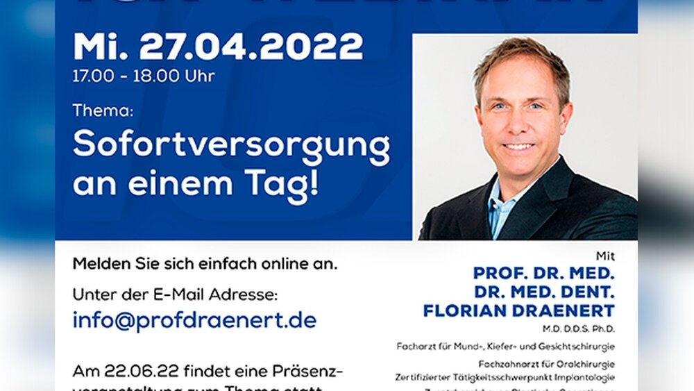 Wir laden Sie herzlich ein am 27.04.2022 Gast des ICX-Webinar's mit Prof. Dr. Med. Dr. Med. Dent. Florian Draenert zu sein.