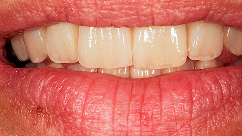 Aufwendige Augmentationen. Nach umfangreichen Knochendefekten im anterioren Bereich müsste der Knochen aufgebaut werden, Bindegewebstransplantate etc. verbessern die Situation weiter. Doch Patienten möchten irgendwann auch einmal die Behandlung abschließen. Und Zahntechniker meistern die keramische Gingivakorrektur wirklich großartig. Auch wenn es für den Behandler wenig zufriedenstellend ist, es gilt mit adäquatem Aufwand ein gutes Ergebnis zu erzielen.