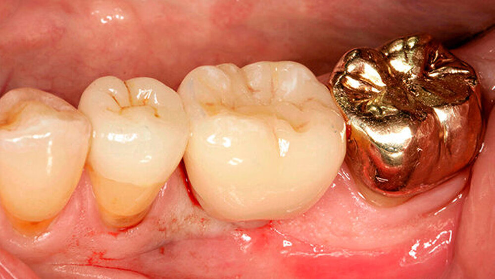 Das Implantat liegt nicht zentral und die Kaukraft wird nicht optimal auf das Implantat übertragen. Das kann zu einer Überlastung des Implantats und zu Schraubenlockerungen führen.