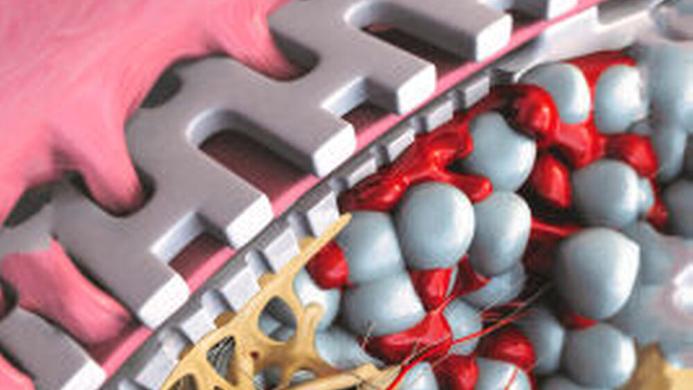 Um Knochen zu bilden, besiedeln Osteoblasten nicht nur die natürliche Knochengrundsubstanz als Unterlage, sie akzeptieren auch geeignete technische und biologische Oberflächen. Zur Versorgung von Extraktionsalveolen oder parodontalen Knochendefekten werden daher osteokonduktive Materialien eingesetzt, welche die Defektstelle stabilisieren, ein Blutkoagulum unterstützen und Raum für die Knochenneubildung schaffen. Das alloplastische, modellierbare Biomaterial Guidor easy-graft besticht durch seine besonderen technischen Eigenschaften und die einfache Handhabung. Es besteht aus einer Spritze, die mit polymerbeschichtetem Granulat vorgefüllt ist, sowie einer separaten Ampulle mit Polymer-Aktivator (= BioLinker). Nach Zugabe in die Spritze löst der BioLinker die Polymerbeschichtung an, wodurch eine „klebrige“ Oberfläche entsteht. Die Granula haften so aneinander, wenn sie verdichtet und geformt werden. Bei Kontakt mit Flüssigkeit/Blut wird der BioLinker aus dem Material ausgeschwemmt. Guidor easy-graft härtet innerhalb von Minuten und bildet ein stabiles Gerüst aus miteinander verbundenen mikroporösen „Körnchen“, die sich optimal in die Form des Defekts einpassen. Der Raum zwischen den nebeneinanderliegenden Granula unterstützt ein Blutkoagulum und lässt zudem Platz für neue Blutgefäße, die sich in der Folgezeit entwickeln. Guidor easy-graft enthält keine Materialien tierischen oder humanen Ursprungs.