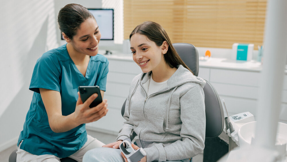 Mitte 2020 wurde die Praxis dabei wegen einer Kündigung zunächst auf gipsfrei umgestellt – eher gezwungenermaßen wurden damals zwei weitere Intraoralscanner bestellt, um der Situation zu begegnen. Wie sie heute selbst sagt: „Das war ein echter Befreiungsschlag!“. Mitte 2022 kam dann DentalMonitoring dazu, seit Mitte 2023 ist sie „All in“ – denn sie folgte dem Gedanken „jederzeit ein Auge auf meine Patienten haben zu können“. Um die Situation erfolgreich in der Praxis zu implementieren, wurden die Rollen hierzu eindeutig neu verteilt: Von der Scansichtung über Alignermanagement bis hin zur Terminvergabe.