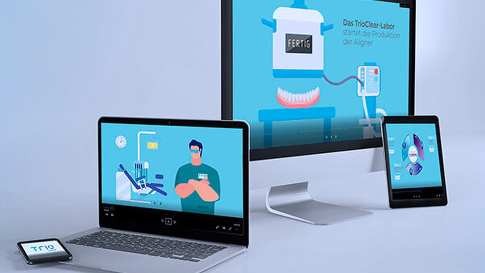 Kurz und kompakt aufbereitet – und damit besonders auch dem Informationsverhalten der Generation Instagram entsprechend – stellt PERMADENTAL das dreistufige Aligner-System in animierten 2D-Videosequenzen vor. Im Fokus des Animationsfilms stehen die einzelnen Behandlungsschritte, die individuelle Abstimmung zwischen Praxis und TrioClear-Experten und der digitale Produktionsprozess. Auch die Vorteile dieses modernen Aligner-Systems für Praxis und Patienten werden kurz und knapp erklärt: deutlich vereinfachte und verkürzte Behandlung, vorhersehbare Zahnbewegungen und maximaler Komfort.