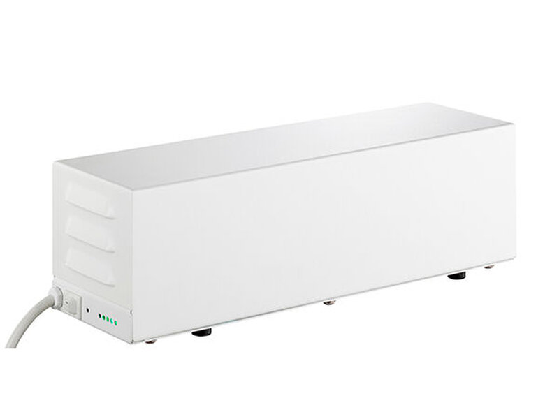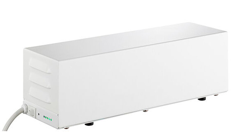 “ arbeitet mit UV-C-Strahlung in zwei Wellenlängen. Die eine eliminiert die Mikroorganismen (Viren, Bakterien etc.) direkt bei der „Bestrahlung“. Ein wichtiger Vorteil bei dieser physikalischen UV-Desinfektion ist, dass sie keine Resistenzbildung hervorrufen kann. Die zweite Wellenlänge ermöglicht eine photolytische Oxidation durch die Erzeugung von Ozon. Dabei werden sowohl die in der Luft als auch die auf den Oberflächen befindlichen Mikroorganismen auf natürliche Weise inaktiviert. Das erzeugte Ozon liegt ab einer Raumgröße von 15 m³ unterhalb von 0,04 ppm (natürliche Ozonkonzentration) und ist daher ist es für Mensch und Tier unbedenklich. Das Gerät ist somit für den Dauerbetrieb in Räumen von 15 bis 60 m³ (ca. 6 – 25 m