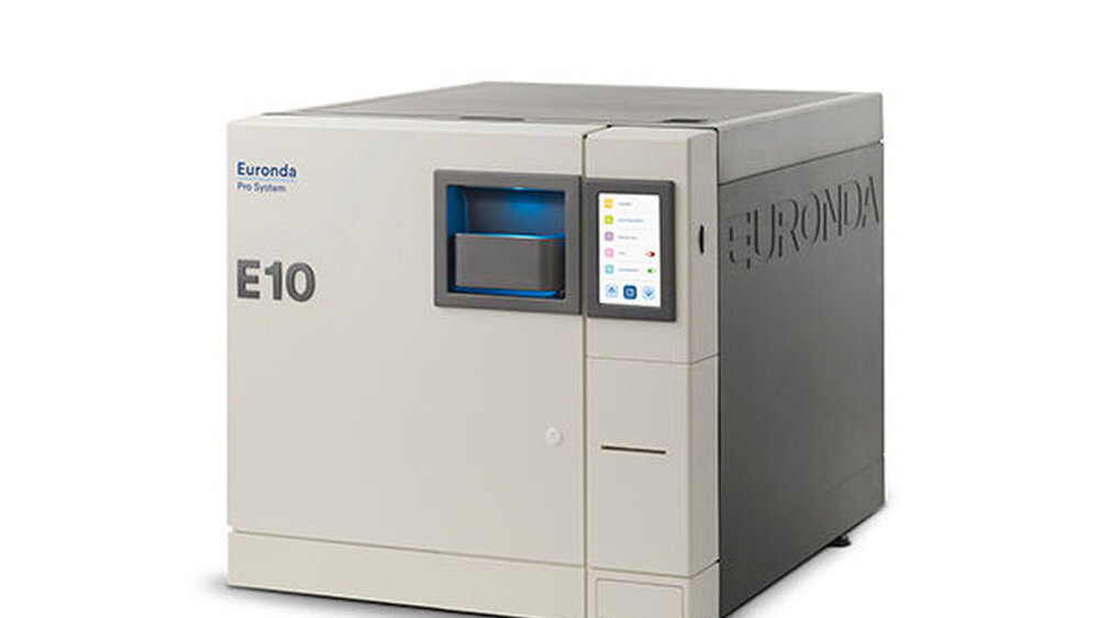 Der Einsatz optimierter Bauteile und einer grundlegend überarbeiteten Software machen den E10 zu Eurondas leistungsfähigstem Autoklaven. Im Schnellprogramm B134 benötigt er kaum mehr als 20 Minuten für das komplette Sterilisationsprogramm inklusive Trocknung. Dabei arbeitet er außerordentlich sparsam: lediglich 300 ml Wasser pro Zyklus werden durchschnittlich verbraucht. Zahlreiche Assistenzsysteme unterstützen das Praxispersonal bei der Anwendung sowie die Wartungs-Techniker beim Service des E10.